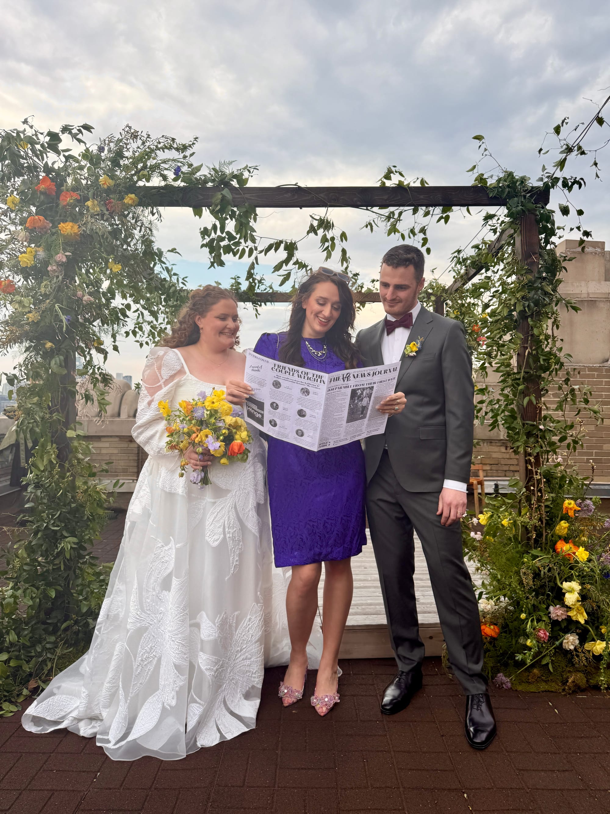We had close friends and family (some who were current and retired journalists, some who were not) write stories for it. It had the sweetest elements of parody (a Hinge ad that said 'we wouldn't be here without our sponsors'), stories of genuine love and affection (advice columns from elder marrieds in attendance), and blurbs that illustrated the bride and groom as a couple and unique individuals (debate columns from the couple about following recipes or not that commented on broader humanity's need to sometimes follow rules and order.. or not). It was a special project to do for friends whom I originally met from working together at our university student newspaper, The Temple News.