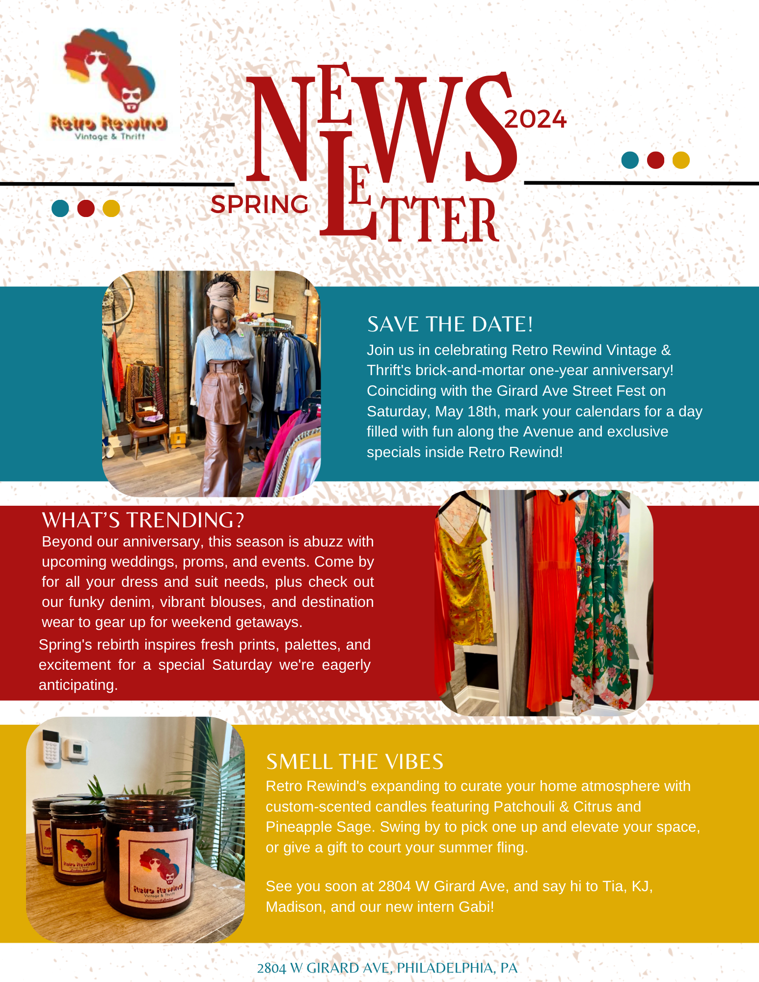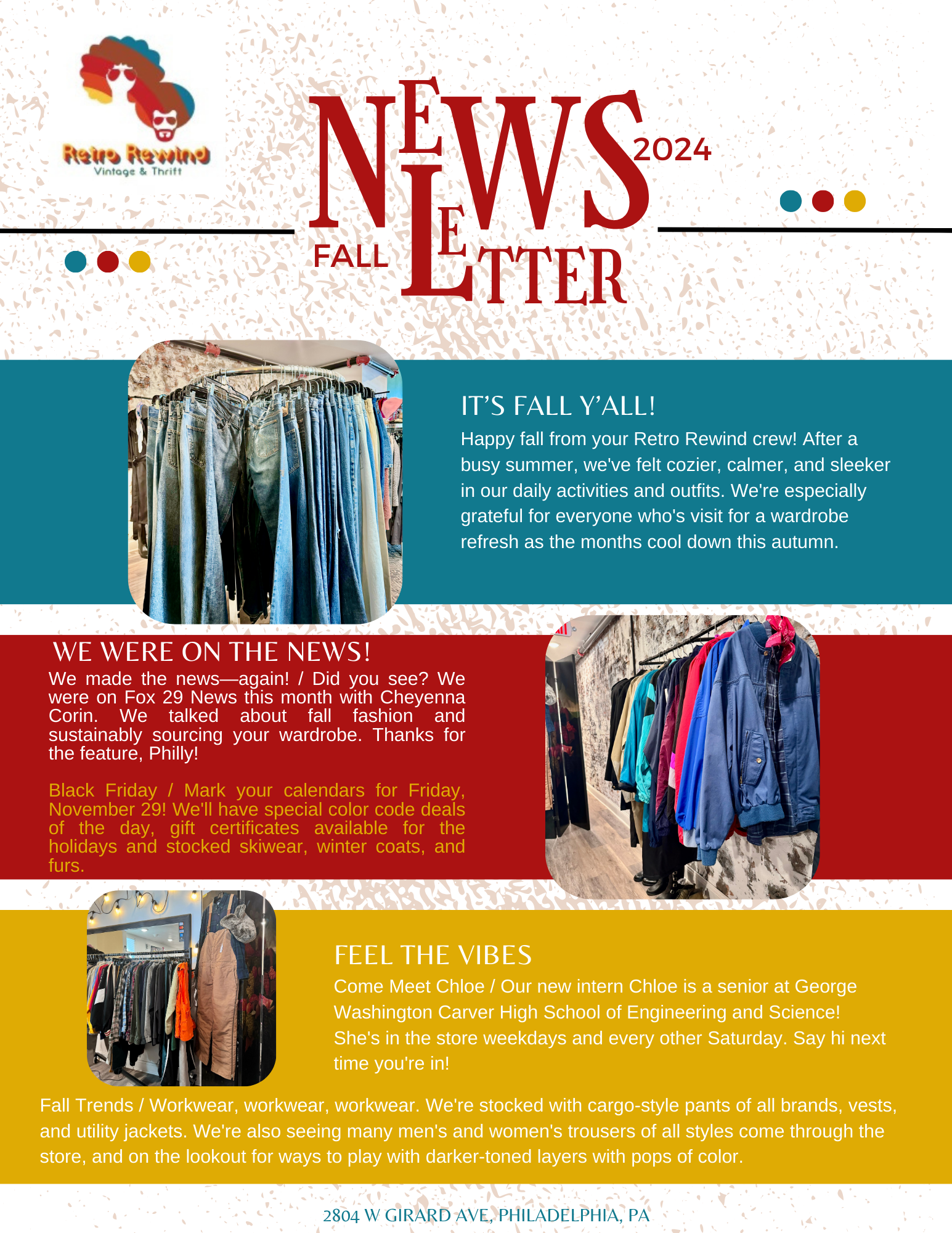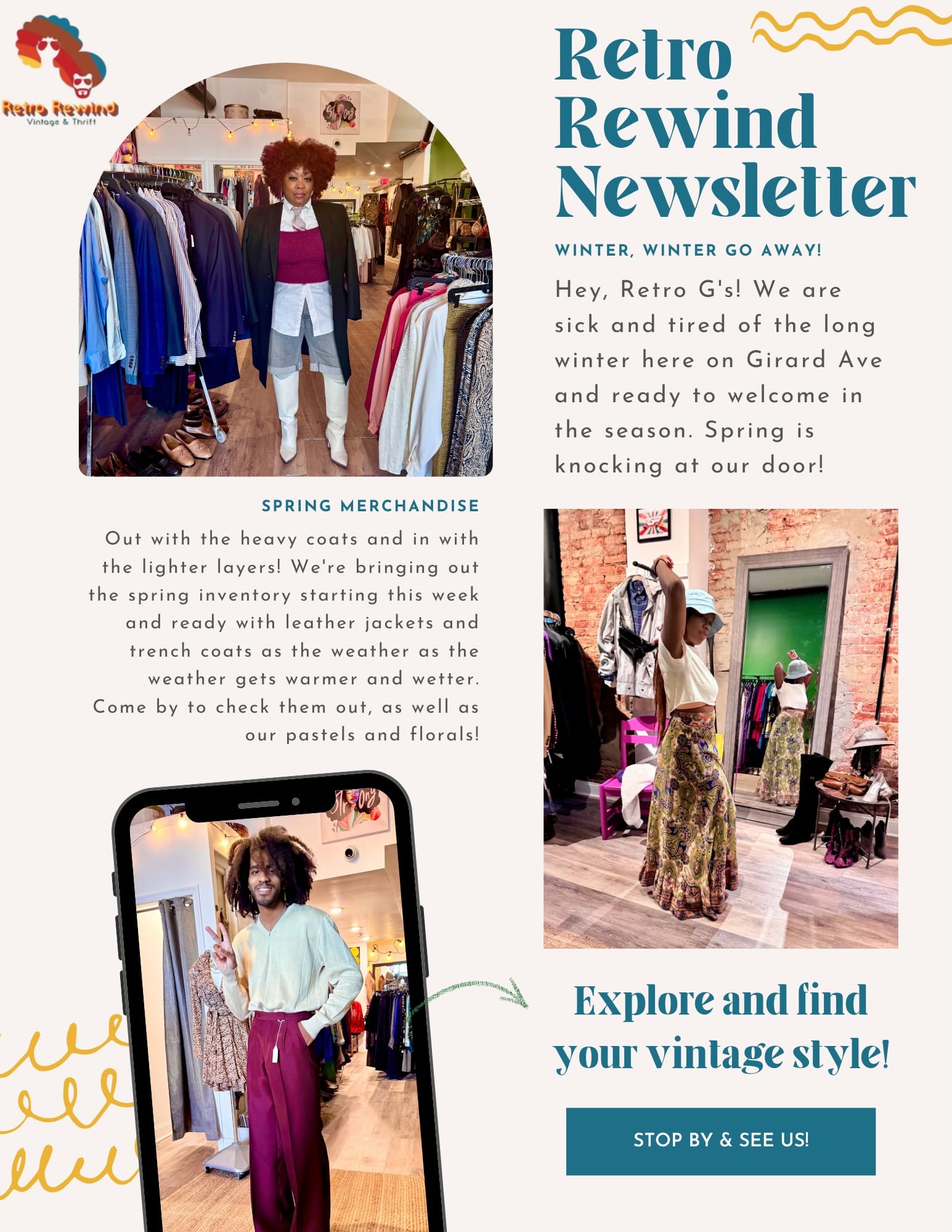In the year and a half that I worked at Retro Rewind Vintage & Thrift boutique in Brewerytown, Philadelphia, I authored its seasonal newsletter. Here's some of our highlights!